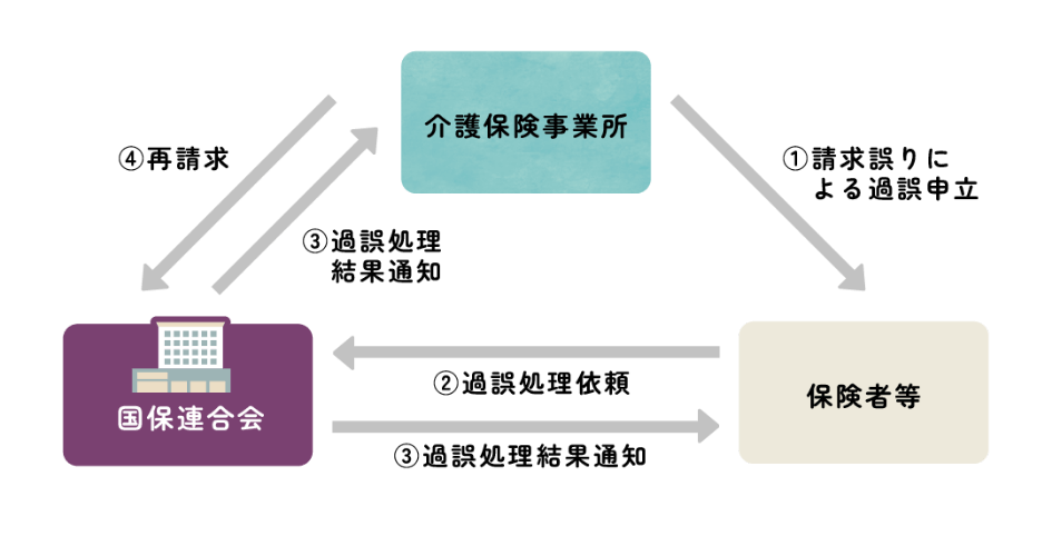 ※ 同月過誤は毎月5日 - 国保連合会は、「過誤決定通知書」により各事業所並びに保険者等に過誤処理結果を通知する。過誤申立により調整する金額は、過誤調整として当月請求支払確定分から差し引きし、事業所への当月支払い金額を確定する。